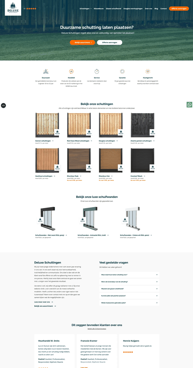 Deluxe Schuttingen wilde opvallen in een markt vol standaard, bouwvakkersachtige uitstraling. Aan ons de taak om een onderscheidend merk te ontwikkelen dat kwaliteit, vertrouwen en duurzaamheid uitstraalt — en deze lijn door te trekken in alle communicatie en verkoop.