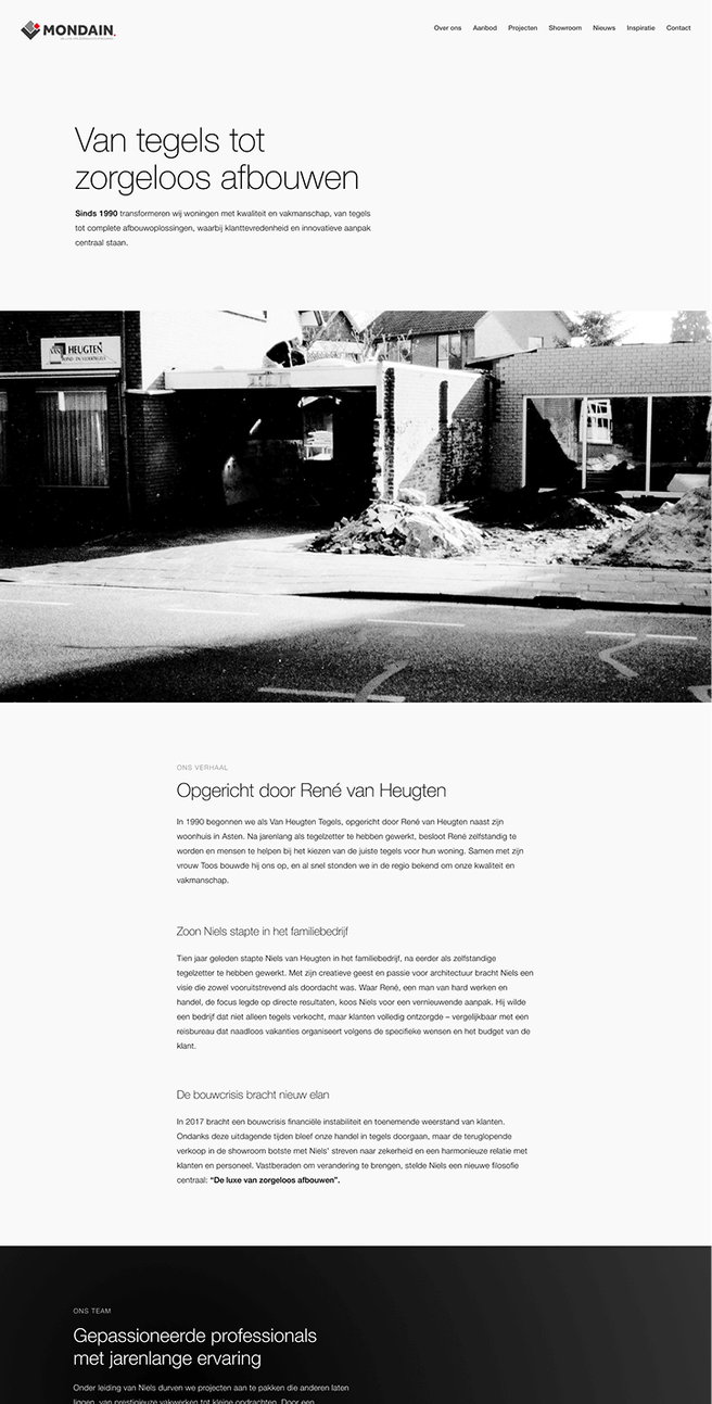 Na een naamsverandering bleef Mondains nieuwe concept onduidelijk voor klanten. De oude website en communicatie sloten niet meer aan, waardoor particulieren en aannemers het merk niet goed herkenden. Aan ons de taak om Mondains verhaal opnieuw richting te geven — met een merk, website en communicatie die zowel particulieren als aannemers raken.
