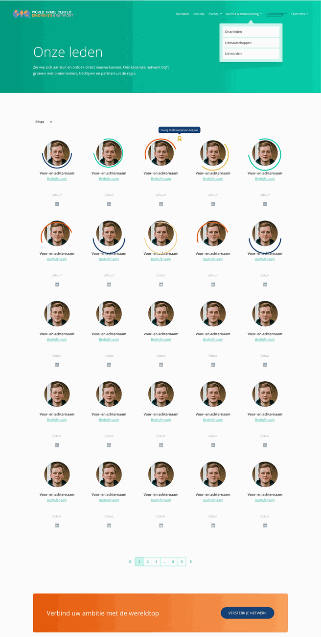 Op basis van de bestaande huisstijl van WTC/e vertaalden we het visuele ontwerp naar een consistent online platform.